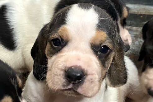薩摩ビーグルの子犬達はスクスク成長中! 5匹が産まれ、里親が決まっていてないのは残り1匹となっております! 価格の件なども含めて、お気軽にご連絡ください!